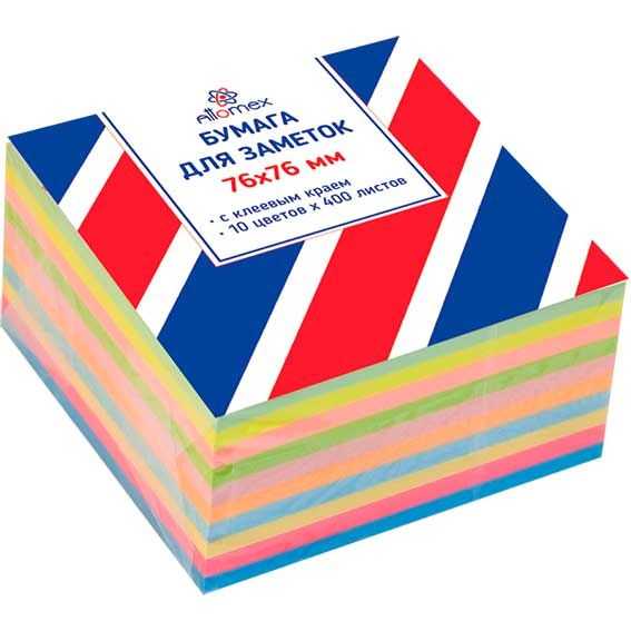 Бумага с клеевым краем 76x76 мм 400 л.Attomex 2010204 (4 цвета)