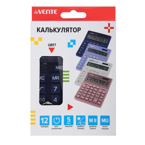 Калькулятор настольный deVente DD-4442B (12 разрядов) синий Калькулятор настольный deVente DD-4442B (12 разрядов) синий