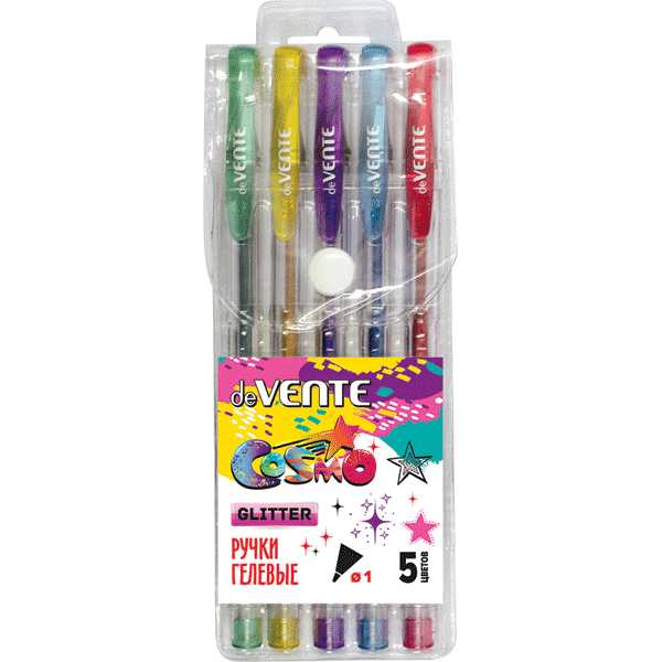 Ручки гелевые с блестками 5 цв.deVente 5051039