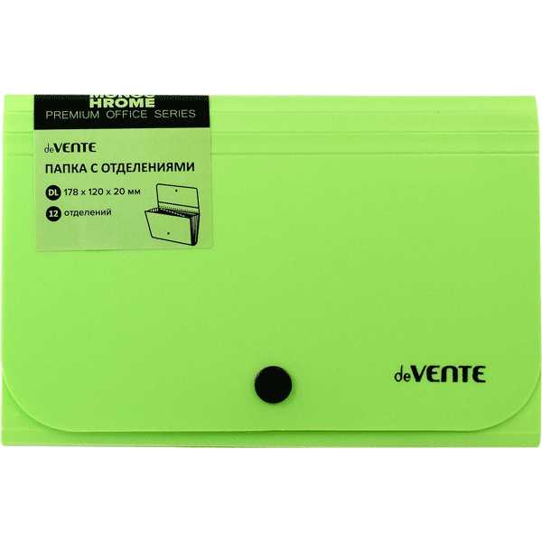 Папка на кнопке с 12 отделениями A6 (0,70 мм) deVente 3078009 зеленая